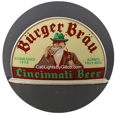 Cab Light advertising was produced by the Gill Glass Company as early as the mid-1930s utilizing high quality and advanced production techniques.
