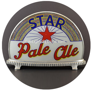 Cab Light advertising was produced by the Gill Glass Company as early as the mid-1930s utilizing high quality and advanced production techniques.