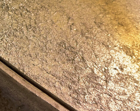 Upon completion, the front and back lenses were secured to a metal base with an aluminum “retaining” strap across the top and a light fixture was added to the bottom with the bulb hidden and centered between the glass panels. The metal base was specifically designed and forged by Gillco and at least five different bases were produced. Some of the bases had “dimpled” flat bottoms that sat directly on the counter and others had slightly raised feet. The most ornate version has raised feet with a “ribbed” aka “scalloped” silver base providing a nice Art Deco style appearance.