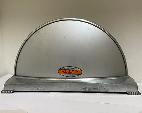 The “Cab Light” Was Born – As an early entry in the market for illuminated advertising, Gillco produced housings and glass panels for various products including gas globes in the 1920s/30s that were typically used outdoors. They subsequently recognized the growing market potential for indoor lighted advertising and designed a striking three-dimensional sign that was patented in 1936.