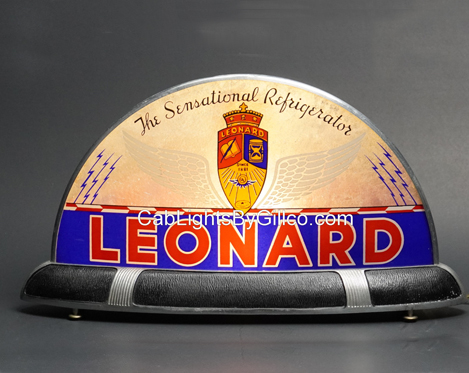 This two-paneled illuminated glass sign was initially referred to as a “Coronet”, but later came to be more commonly referred to as a “Cab Light” due to its dome-like shape which was similar to the lighted signs on the tops of Taxi Cabs at the time.