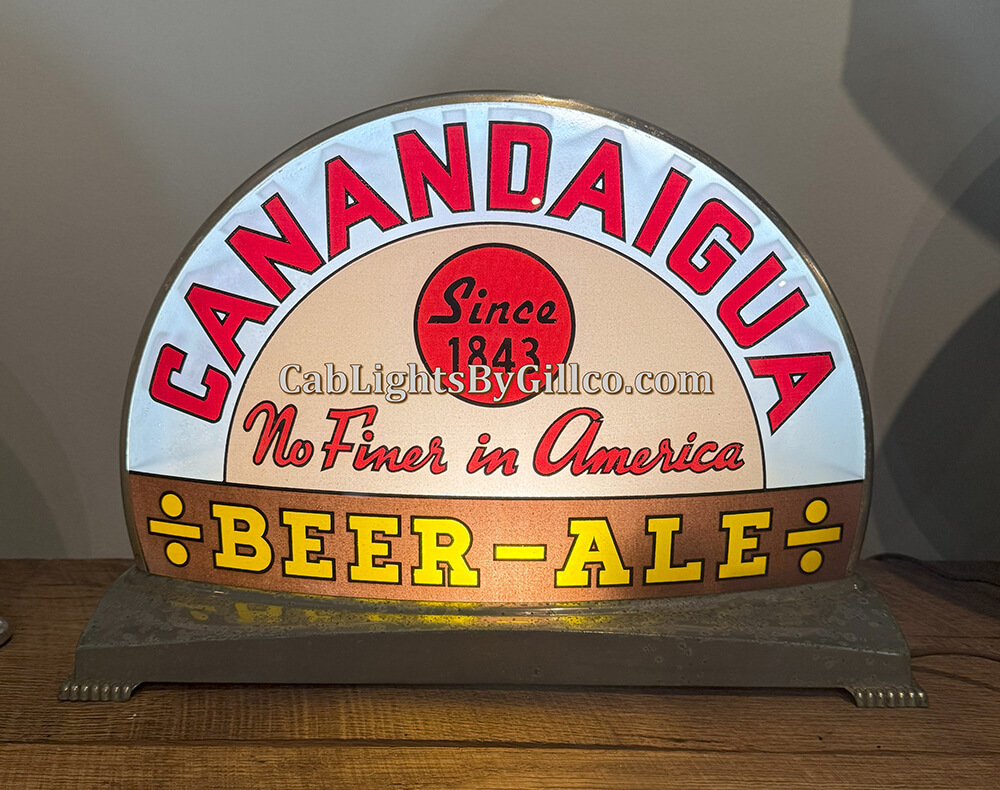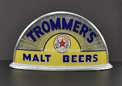 Although there are multiple styles with differing sizes of glass panels and types of bases, a total of only 95 different Cab Lights have been discovered to date. This includes very slight variations as detailed in the following list. In conjunction with the members of the National Association Breweriana Advertising (“NABA” nababrew.com), this database is being continually updated as new Cab Lights are identified or discovered. If you believe you have discovered a new Cab Light example, please notify me! kbelcher8@outlook.com or 703 625 5827.