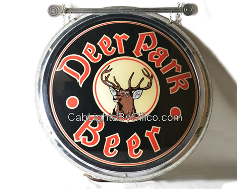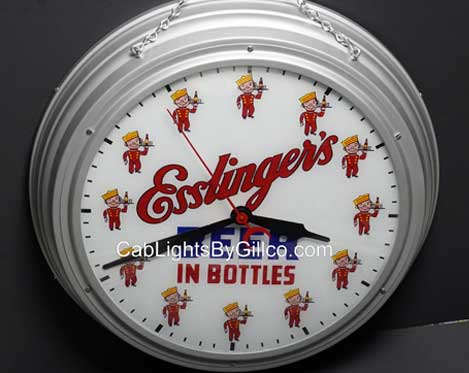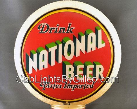 In addition to Cab Lights, Gillco manufactured many other styles of signs with varying sizes, shapes and illuminations. The styles/functions included clocks, double sided globes other back-bar items and non-illuminated signs. In many cases, the advertised product was beer related.